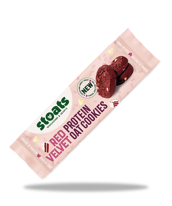 Butter (MILK) (18%), whey protein concentrate (MILK) (12%), soft light brown sugar, white chocolate (8%) (sugar, whole MILK powder, cocoa butter, skimmed MILK powder, emulsifier: SOYA lecithin, natural vanilla flavouring), OATS, oligofructose, cocoa SOYA protein crispies (6%) (SOYA protein, alkalised cocoa powder, tapioca starch, calcium carbonate), flour blend (rice, potato, tapioca, maize, buckwheat), beetroot powder (5%), rapeseed oil, rice syrup, soluble tapioca fibre, SOYA protein isolate (2%), grape juice concentrate, maize starch, skimmed MILK powder, alkalised cocoa powder (1%), natural flavouring, raising agent: sodium bicarbonate and salt.